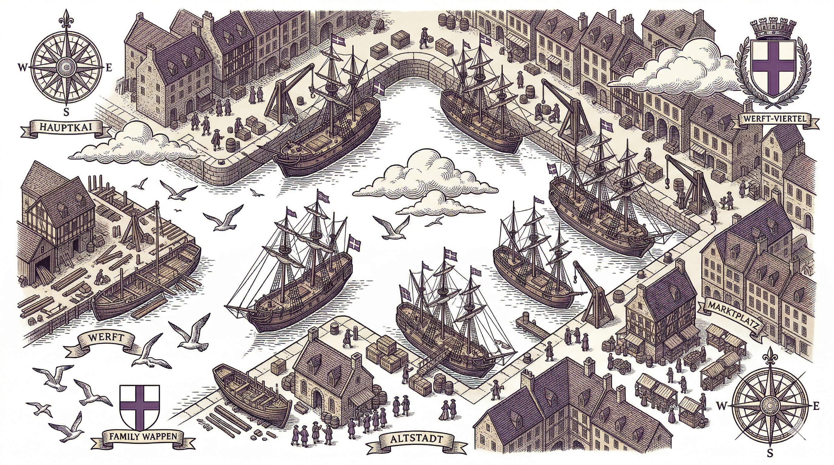 Beladet eure Schiffe mit den Waren am Hafen. Nehmt so viel ihr könnt.